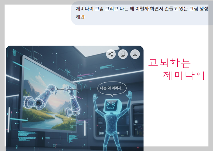 앞전글에서, 제미나이의 이미지 image 작업시 발생되는 문제를 들여다 봤다. 이 부분을 제미나이에게 직접 물어보는 형태로 해서 한번 짚어 봤다. 이미지 생성이 아니라 그냥 이 부분만 물어보기 위해 아예 따로 방을 만들고 이 부분만 물어 봤다. 개인적으로는 이 현상이 궁금해서 앞장에서 언급했었고, 이번엔 이 부분을 A.I 에게 직접 물어봐 가면서 원인을 알아봤다. (이 상황은, 위에 올린 그림에 요청을 했는데, 완전히 다른 그림이 나온 이유) *이하 user가 내가 물어본것이고 (붉은색) 중간 중간 푸른색은 내가 첨언한것.. USER이미지를 생성하다보면 갑자기 엉뚱한 이미지를 만들어내는 경우가 있는데 공식적으로는 그 이유는 뭐라고 하드냐? Gemini의 응답 이미지 생성 AI가 사용자의 의도와 전혀 ..